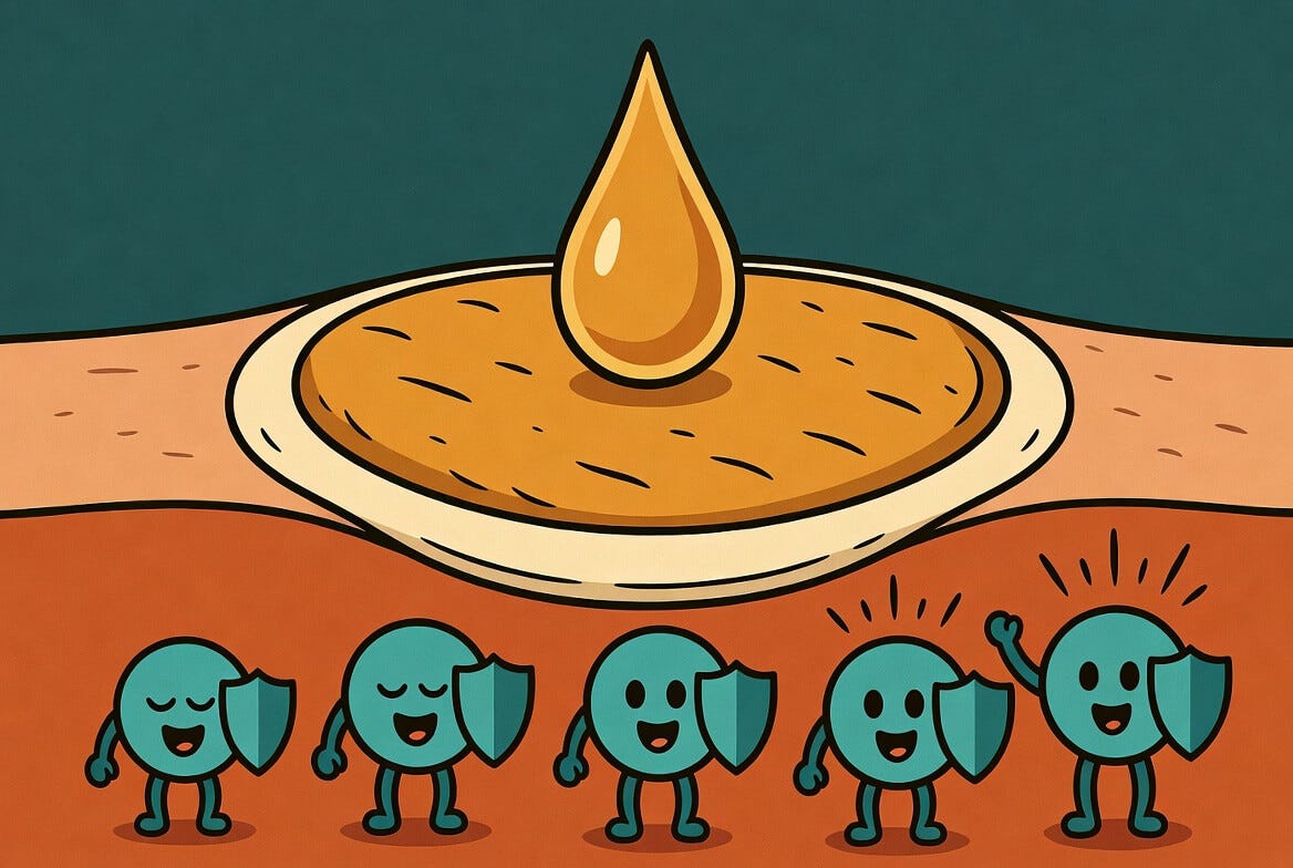 Think of your skin less like a plastic wrapper and more like a biological security keypad. The castor oil doesn’t need to force its way deep into your system to work; it simply punches in the correct code on the surface, signaling your internal security team (T-cells) to wake up and start their patrol.